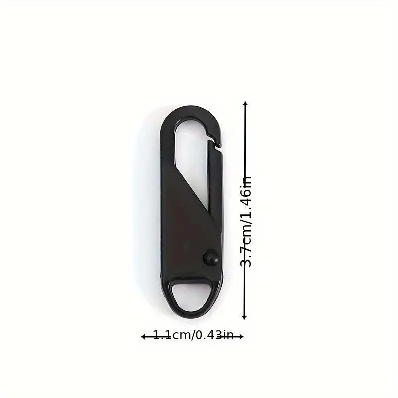 - Fermuar başlıklı karabina kilit: Fermuar sürgüsü, fermuarın bir tarafında bir baskı ile sabitlenir, bu da fermuarı fazla çaba harcamadan onarmak için daha iyi bir çözümdür
