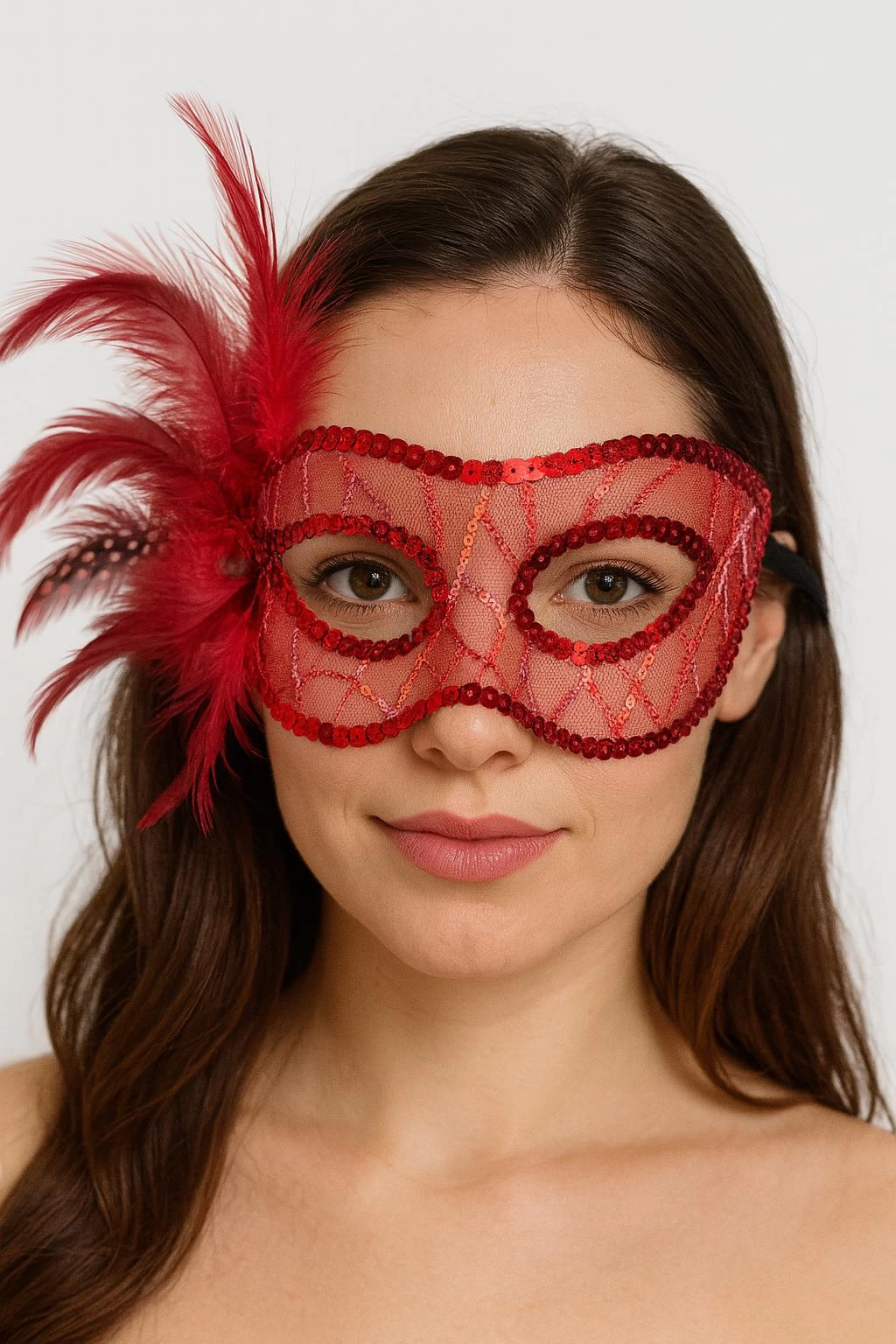 Kırmızı Renk Yandan Tüylü Pul Payet İşlemeli Parti Maskesini Neden Seçmelisiniz?