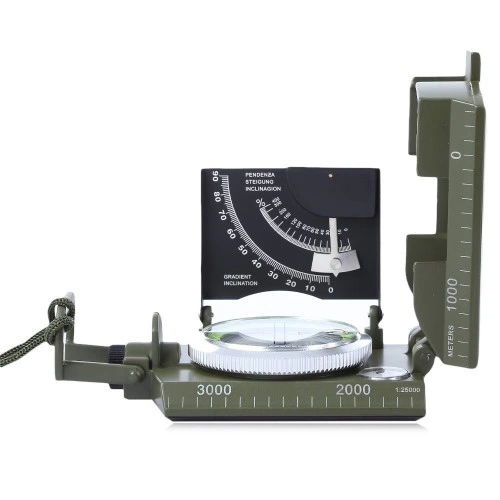 ekstra Geniş Pusula / Pusula Ağır, Sert Metalden Yapılmış Entegre Meyil (090 Derece Ve Yüzde) Ile / Askeri Pusula