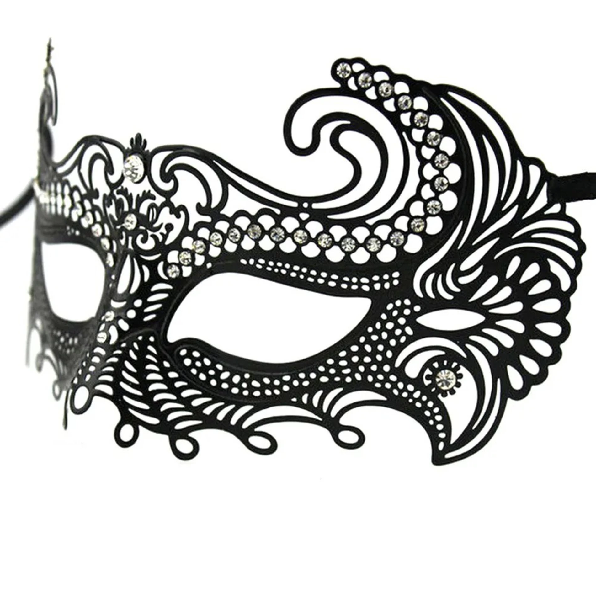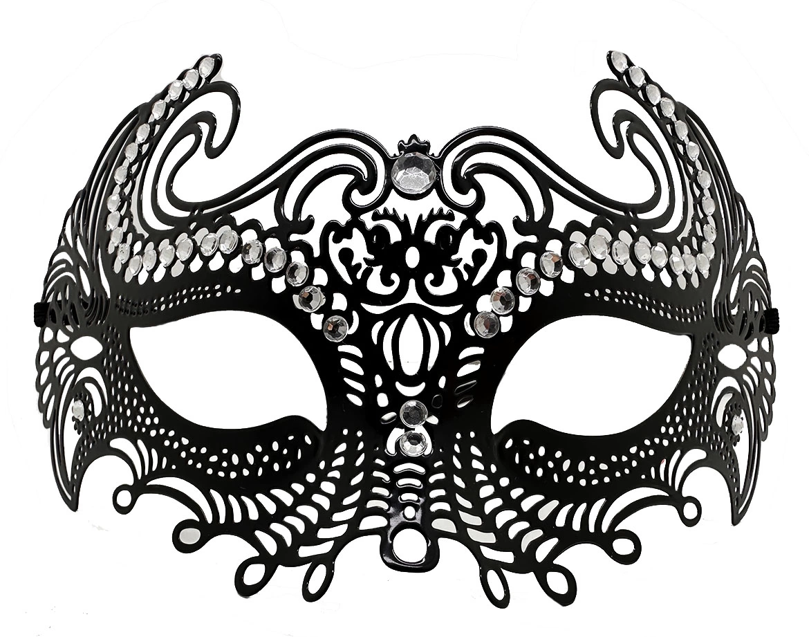 Siyah Renk Lazer Kesim Üzeri Kristal Taşlı Metal Balo Parti Venedik Maskesi