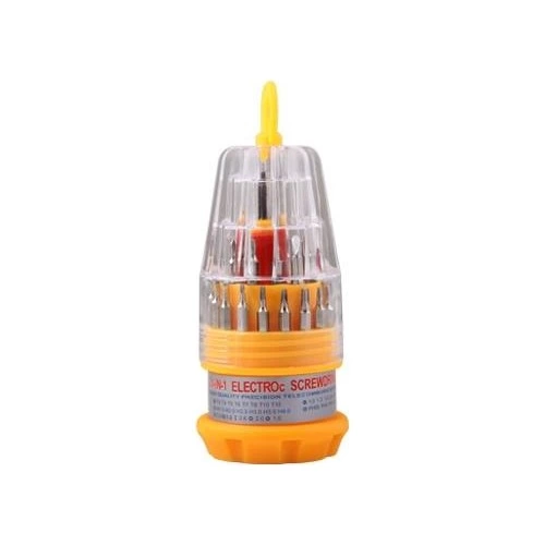 31 parçalık Tornavida Seti sayesinde ufak tamir işleriniz için artık tamircilere para ödemeyin Vida sıkmak gibi basit işlerinizi kendiniz yapabileceksiniz. Değişik uç ve büyüklüklerden oluşan mükemmel ergonomik tasarımlı bir tornavida setidir. Ürün Özellikleri Laptop cep telefonu vb. cihazlara uyumlu başlılar. Metal başlıklar İnce ve küçük yerlere ulaşabilmesi için tasarlanmıştır. Kauçuk tutma yerleri Mıknatıslı uçlar Ürün Ölçüleri 10 cm x 5 cm x 5 cm Paket İçeriği 1 Tornavida Sapı 30 Mıknatıslı Tornavida Başlıkları