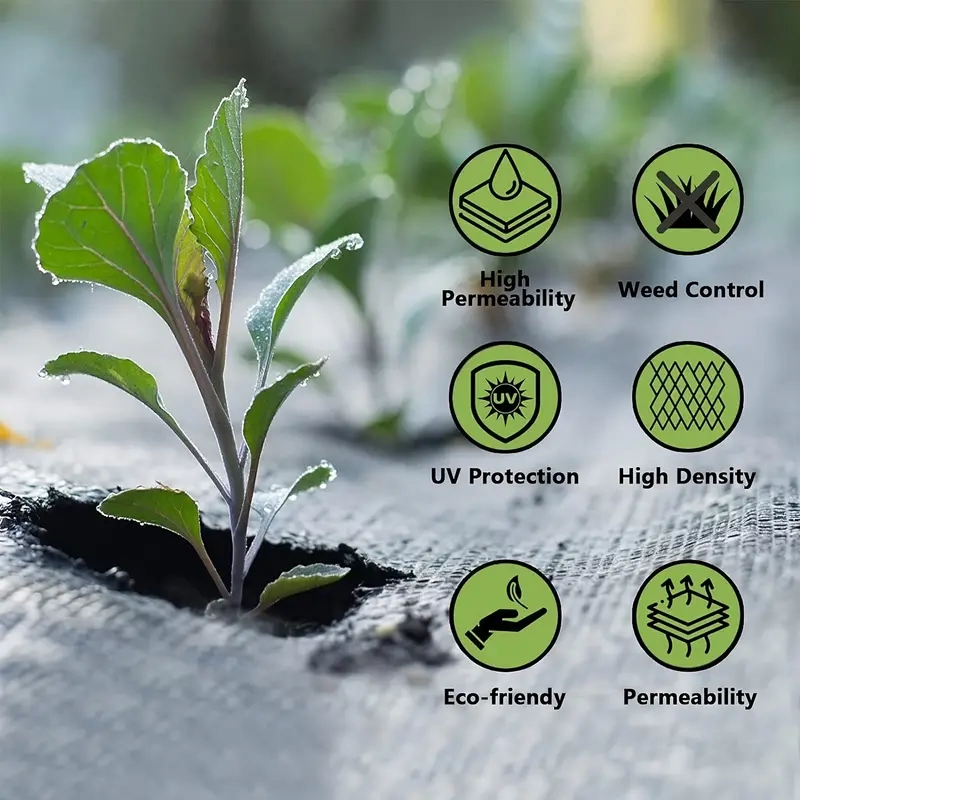 Bizim benzersiz bahçe yabani otları matları hava ve suyun geçmesine izin vermek için tasarlanmıştır, böylece toprak nemini korur ve mükemmel yabani ot kontrolü sağlar
